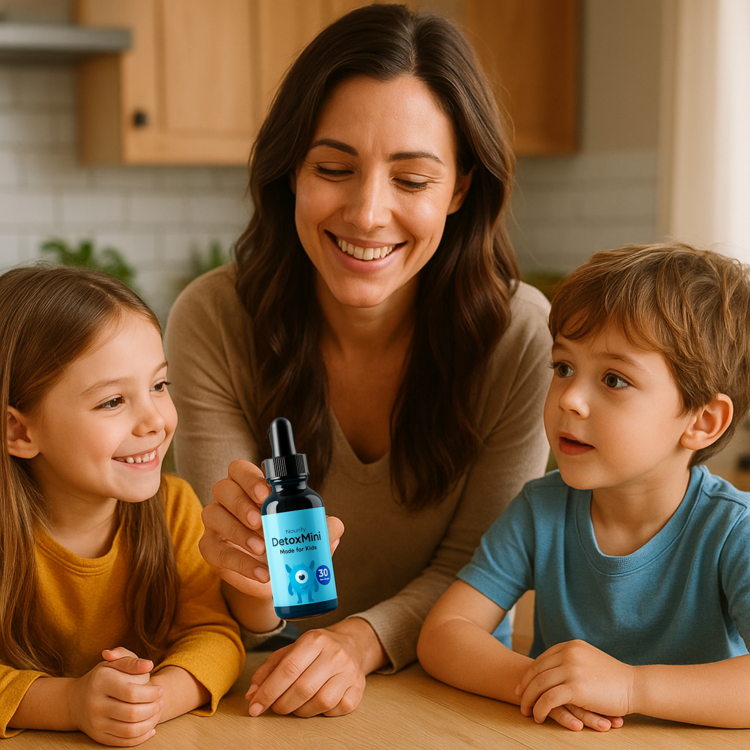 Nourify DetoxMini es un suplemento líquido apto para niños y aprobado por padres, diseñado para favorecer suavemente la desintoxicación natural, una mayor claridad en el habla, una mejor concentración y el bienestar general. Elaborada con ingredientes naturales sin OGM, esta mezcla, formulada por pediatras, incluye zeolita, vitamina B12, vitamina D3 y folato (vitamina B9), cuidadosamente seleccionados para ayudar a depurar el organismo y favorecer la salud cognitiva y del desarrollo.