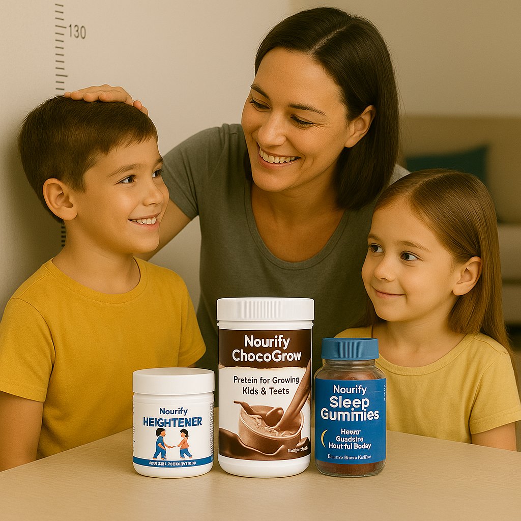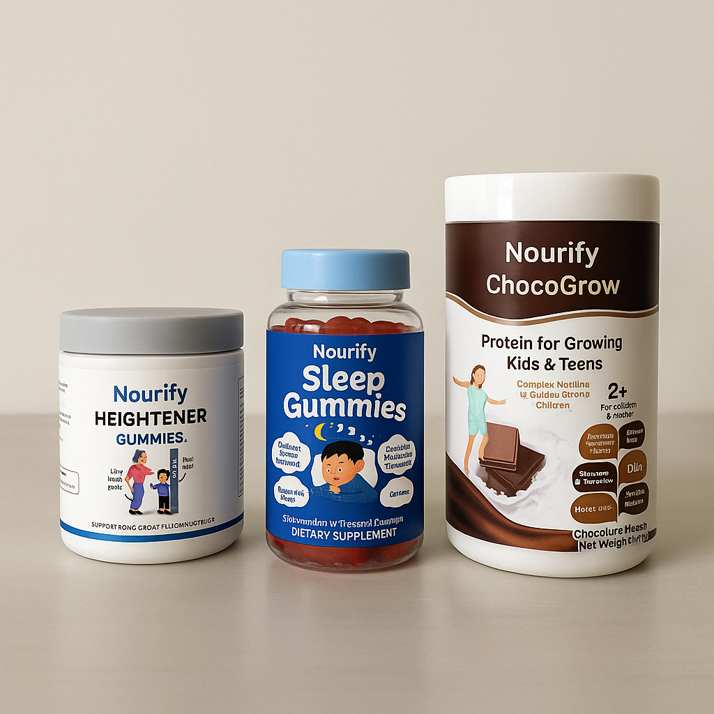 Nutritional gaps can hold kids and teens back from reaching their full growth and wellness potential. The Nourify – Growth Kit is a 3-in-1 complete growth solution combining ChocoGrow, Heightener Gummies, and Sleep Gummies — all working together to support total development.