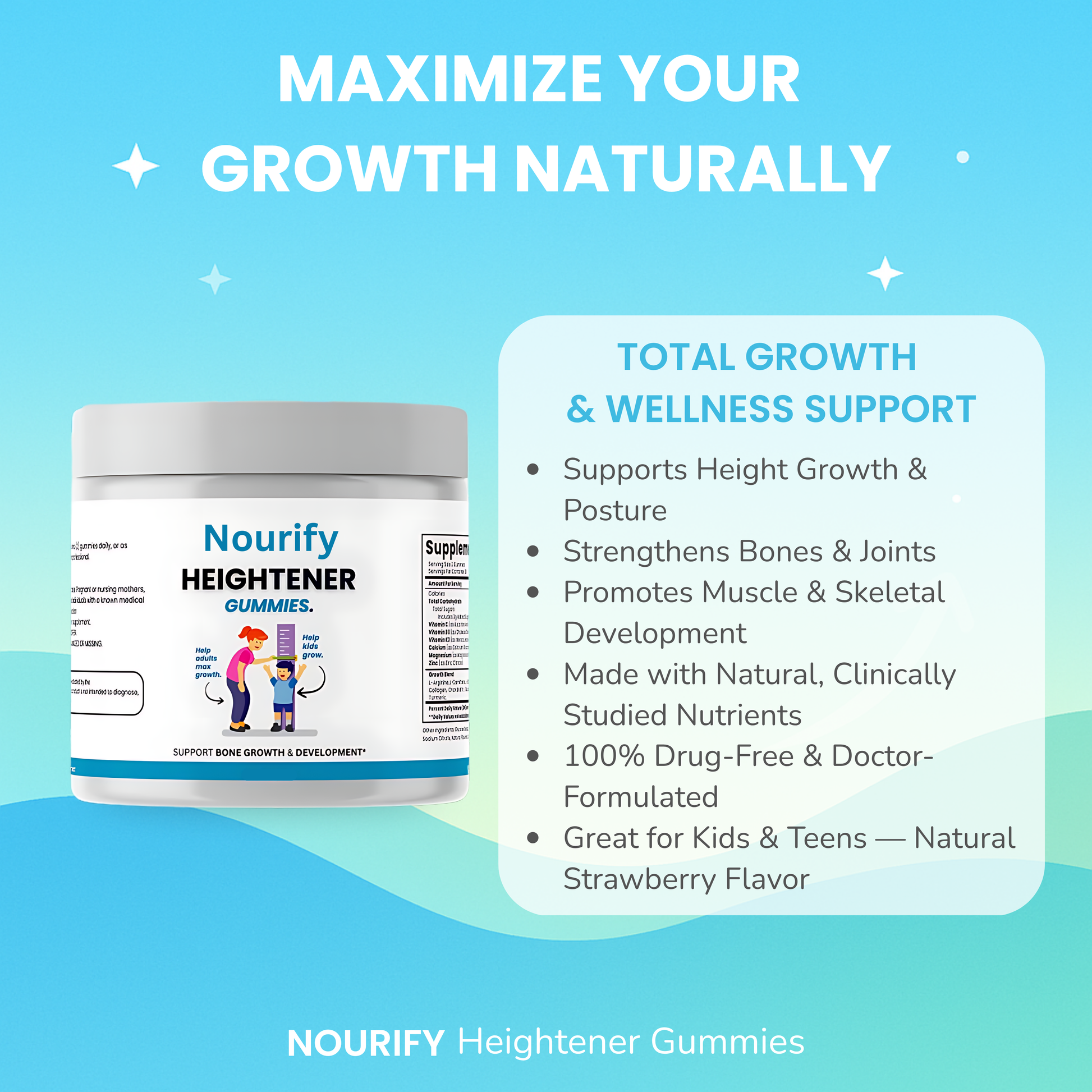 With clean, research-backed ingredients and proven benefits, the Nourify Growth Kit helps kids grow healthier, stay energized, and thrive every day.